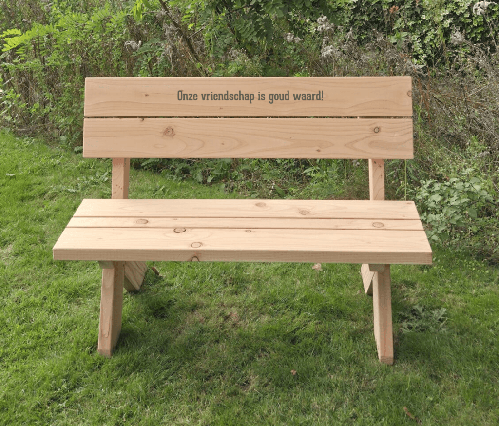 Wil je iets unieks? Dan kun je jouw houten tuinbank laten graveren met teks en/of logo. Zo wordt een standaard houten tuinbank een persoonlijk product met een blijvende betekenis. Van een compact hout tuinbankje tot een stevige hout bankje buiten: elke bank wordt met zorg gemaakt en afgewerkt. Ze zijn ook perfect te combineren met onze Douglas picknicktafels